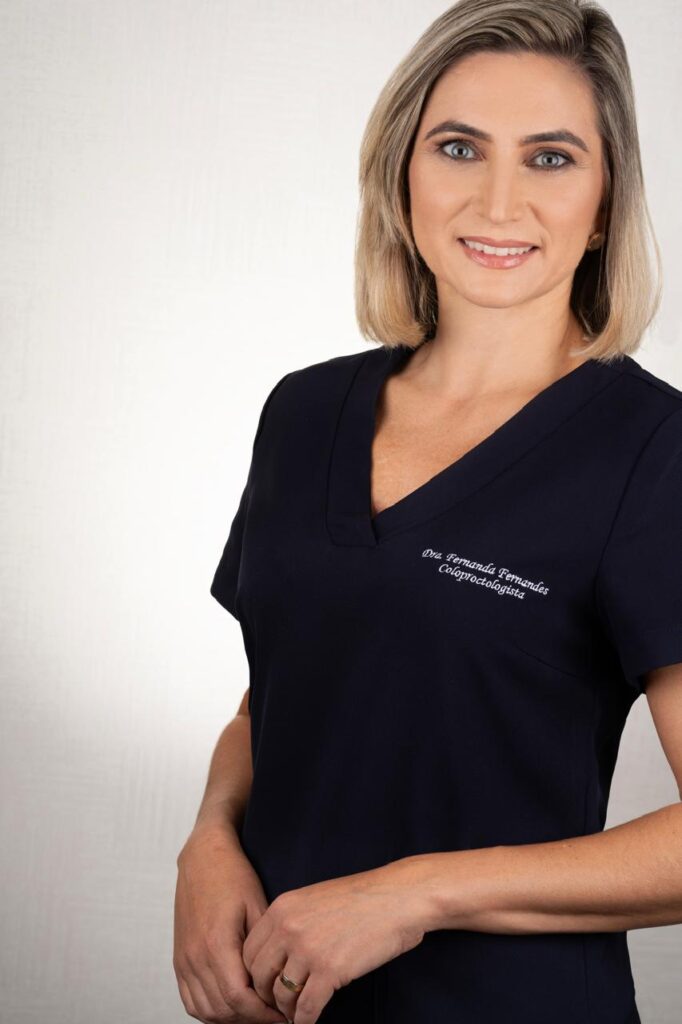 A Dra. Fernanda Fernandes é médica proctologista, com título de especialista pela Sociedade Brasileira de Coloproctologia.